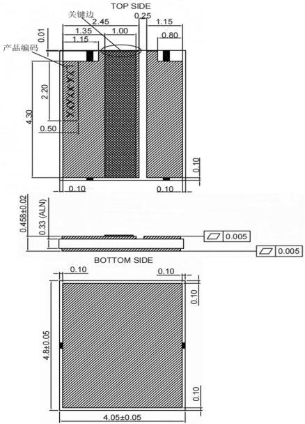 COS热沉尺寸(4.05×4.8×0.458mm)